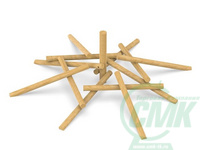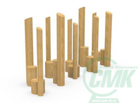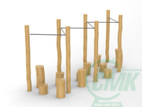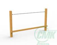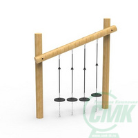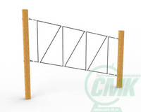 Дерево, покрытие - антисептик, масло террасное атмосферостойкое или акриловая эмаль атмосферостойкая для древесины. Канатные сети - канат армированный 16 мм, фурнитура из коррозионностойких материалов. Подвесы - цепочка из нержавеющей стали.