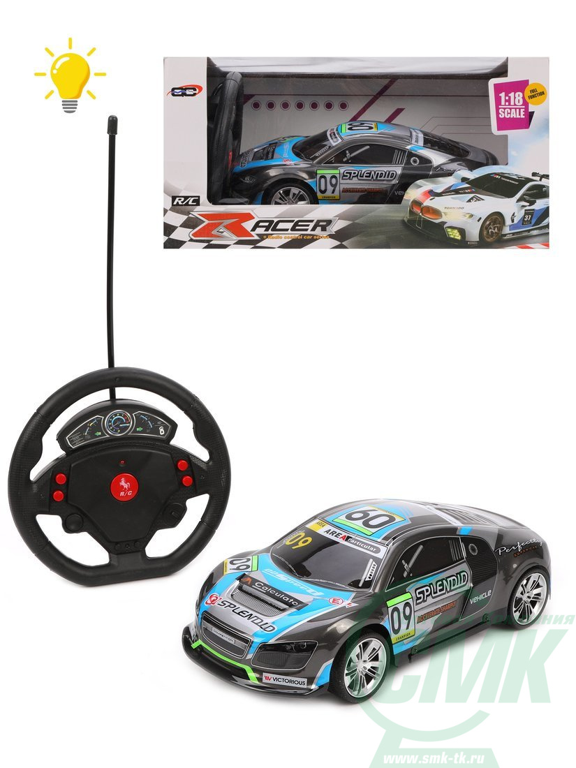 Радиоуправляемая модель спортивного автомобиля выполнена в масштабе 1:18. Направления движения (вперёд и назад, а также повороты направо и налево) задаются игрушке нажатием соответствующих рычагов пульта. Во время игры загораются фары.