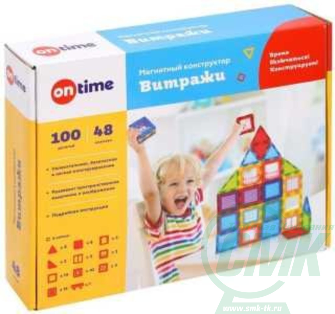 Магнитный конструктор «Витражи» от торговой марки ON TIME поможет ребёнку научиться собирать простейшие и плоские фигуры. Он будет интересен как малышам, так и детишкам постарше. Яркие пластмассовые детали разных цветов легко соединяются друг с другом, их удобно и легко держать детской ручкой.