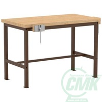Столешница — массив толщиной 40 мм. Металлокаркас окрашен износостойкой порошковой краской коричневого цвета.