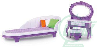 Набор "Конфетти" для кукол. В комплекте - будуар, туалетный столик и табурет. Размер будуара (ДхШхВ) составляет 32х12х10 см, туалетного столика (ДхШхВ) -14х5,5х19,5 см, высота табурета - 4,5 см. Игрушки изготовлены из пластика. Рекомендованный возраст: 3 года +.