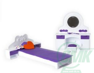 Очень стильный и яркий набор кукольной мебели "Спальня" станет прекрасным украшением кукольного домика. Миниатюрная кровать выглядит как настоящая. Особую достоверность добавляют выдвижные ящики у двух прикроватных тумб и в трюмо. В комплект игрушки входят: Пуфик - 1 шт., Рама кровати - 1 шт., Подушка кровати - 2 шт., Тумба кровати - 2 шт., Трюмо в сборке - 1 шт., Ящики трюмо и тумбы - 4 шт. Набор мебели "Спальня подходит для кукол размером до 30 см. Текстиль в комплект не входит!