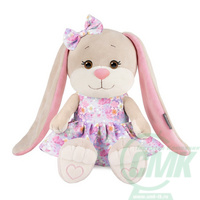 Мягкая игрушка Зайка Лин В Голубом Платье С Розовыми Цветами 25 см код 851584 арт. JL-04202313-25