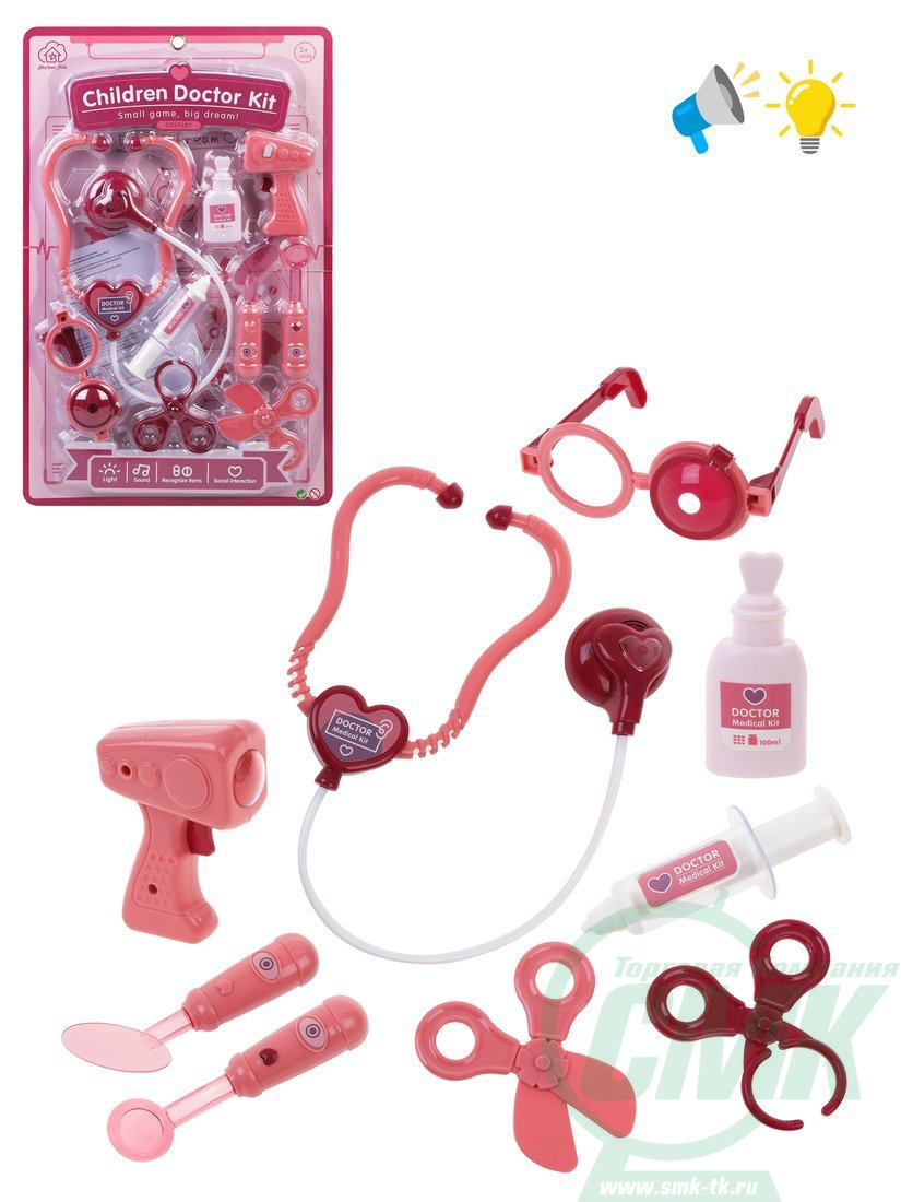 Игр. наб. Доктор, свет, звук, в компл. предм. 9шт., эл. пит. AG13х6шт. вх. в компл., блистер код 651017 арт. SK-101A