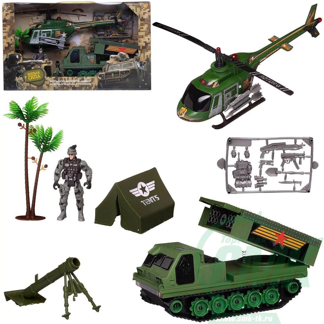 Игровой набор Военная техника с вертолетом, гидроциклом, фигуркой и аксессуарами, 6 предметов код 601316 арт.PT-01322
