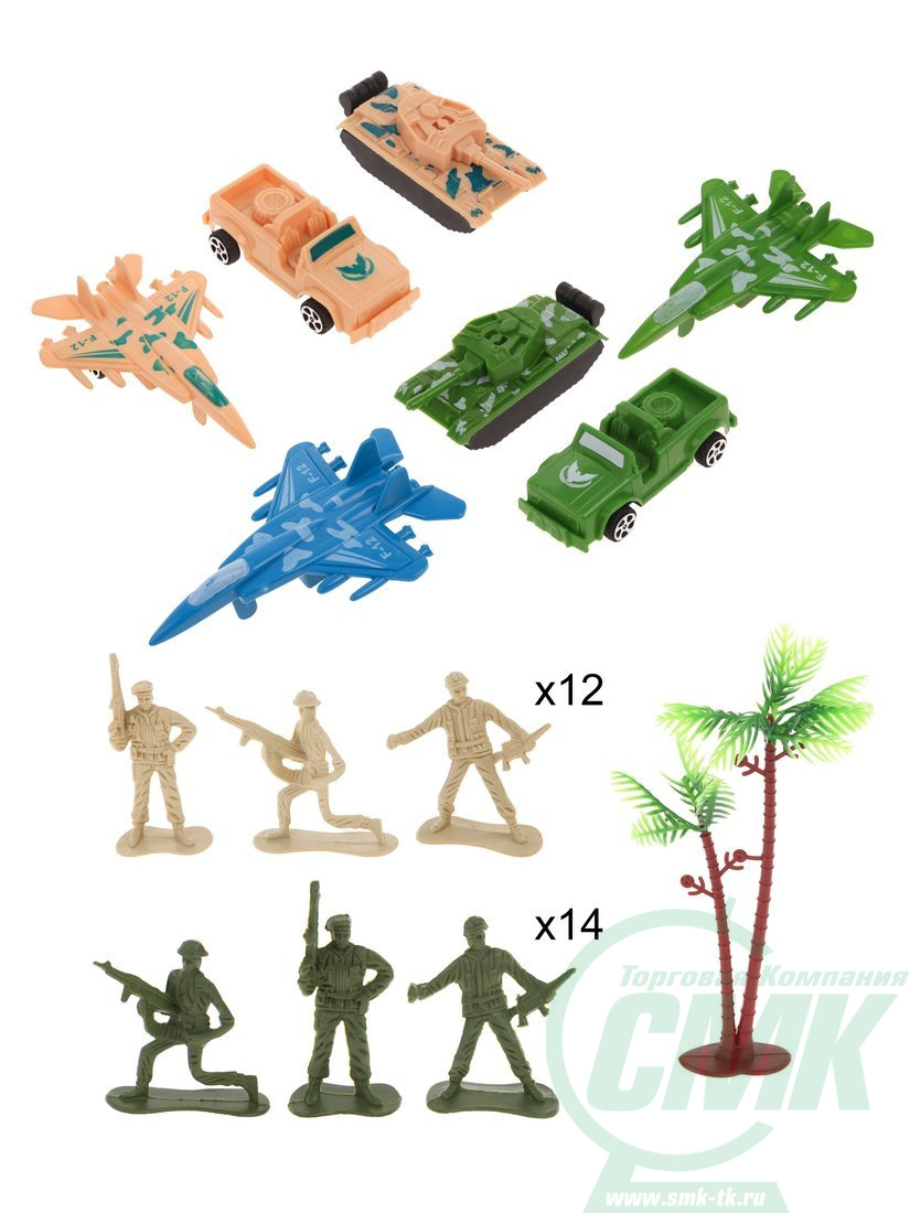 составе набора – 38 игрушечных предметов, среди которых: фигурки солдатиков,