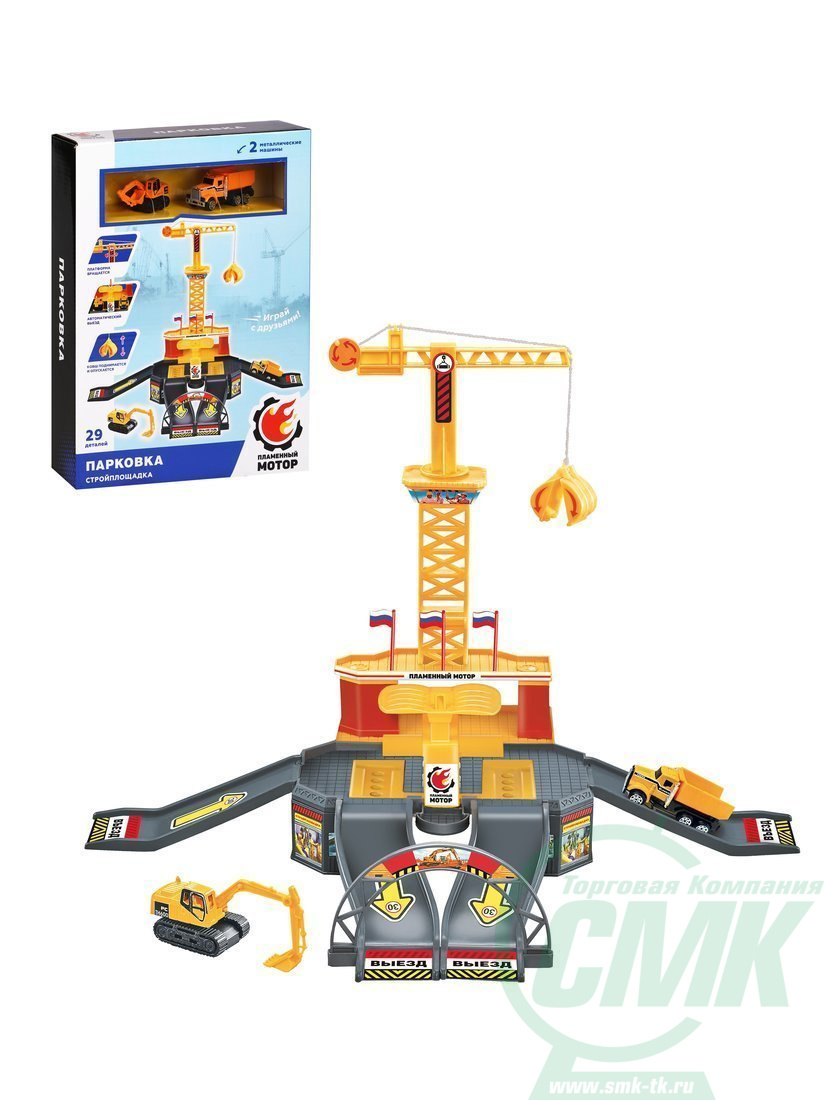 ДЕФЕКТ УПАКОВКИ Парковка Стройплощадка, подъмный кран, вращается платформа, поднимается и опускается ковш, машины металл -2шт. код 805134 арт.870987