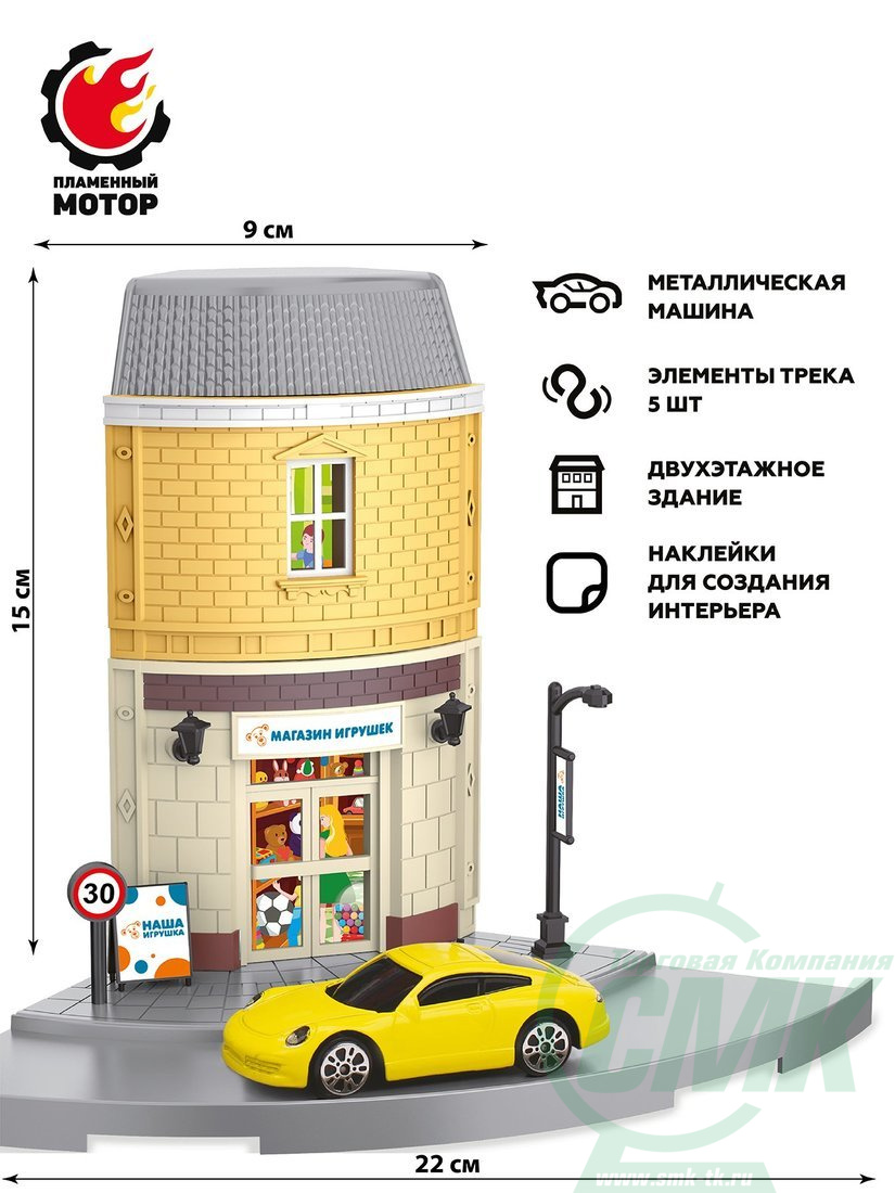 Мегаполис Магазин игрушек, машина мет., 2-х этажное здание, элементы трека код 870704 арт. 870704