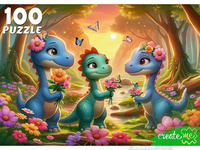 Пазлы 100 Три динозаврика в лесу арт.УК100-0240 код.330772