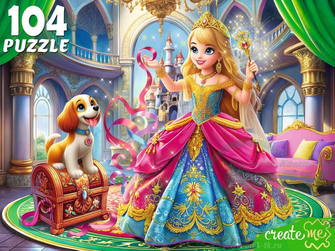 Пазлы 104 Веселая принцесса и щенок арт.УК104-0200 код.330773