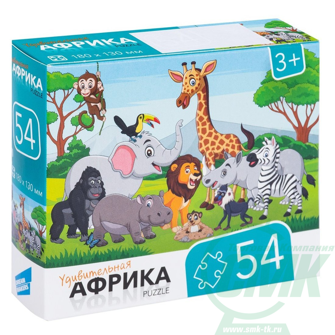 Пазлы 54 элемента. Необходимо соединить детали пазла верно, чтобы получилась единая картинка. Игра поможет ребёнку изучить животных Африки, а также разовьёт моторику, воображение и ассоциативные навыки.