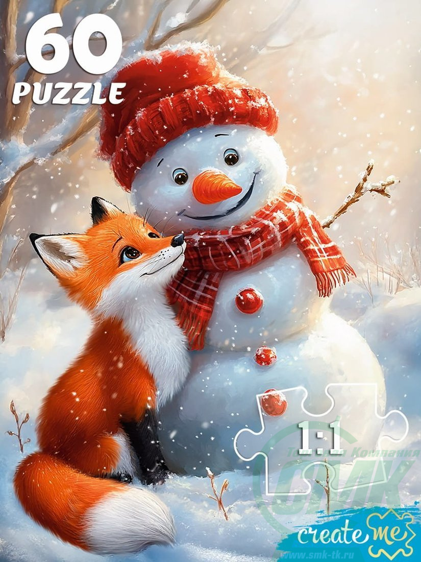 Пазлы 60 Лисёнок и снеговик арт.П60-7599 код.330839