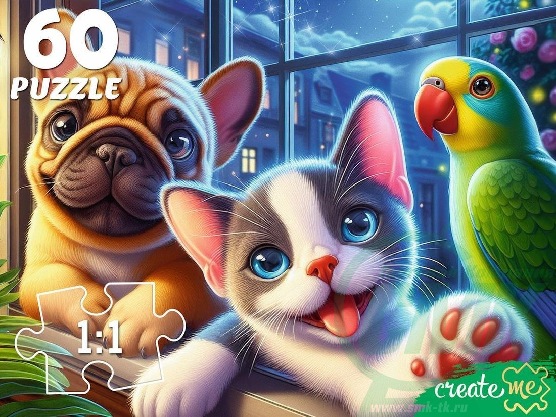 Пазлы 60 Ночное селфи питомцев арт.Х60-2003 код.330884