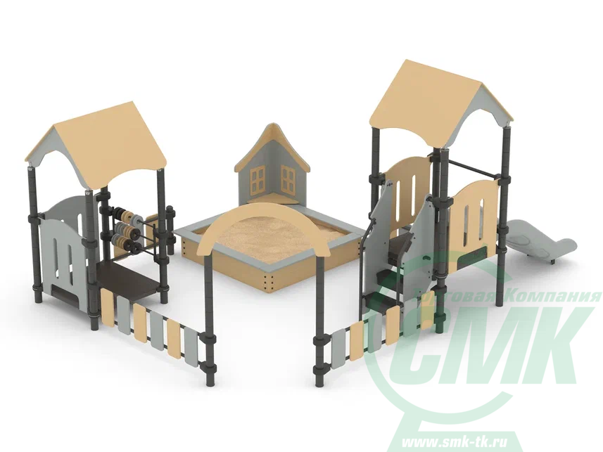 Песочный дворик с горкой – это яркий игровой комплекс с песочницей, горкой и домиками. На домиках установлены счеты, которые помогают развивать мелкую моторику и учиться счету. Игры с песком также развивают мелкую моторику, фантазию и усидчивость. Может устанавливаться на любых площадках. Является не только практичным игровым оборудованием, но и эстетически красивым украшением площадок.