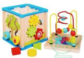 ДЕФЕКТ УПАКОВКИУвлекательный игровой центр "Суперкуб" сочетает в себе целых 5 развивающих игр для малышей! В набор входит игровой куб и 3 фигуры. Такие игрушки создаются специально для развития у детей мелкой моторики рук, координации движений, логики и смекалки. Перемещай яркие, разноцветные бусины по крутому лабиринту; крути шестерёнки; изучай время, двигая стрелки часиков; проводи птичек по извилистым дорожкам; проталкивай объёмные фигурки квадрата, круга и треугольника в отверстия соответствующей формы.Размер игрового куба (ДхШхВ): 15х15х15 см. Изделие изготовлено из натуральной древесины. Рекомендованный возраст: 3 года +