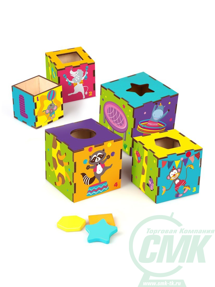 Умные кубики "Веселый Цирк" 3в1: кубики, сортер, пирамидка код962111 арт.962111