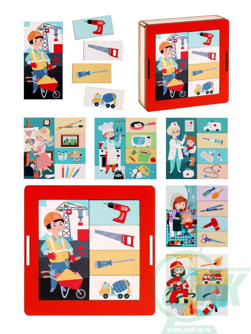 вкладыши с изображениями предметов, соответствующих той или иной профессии,