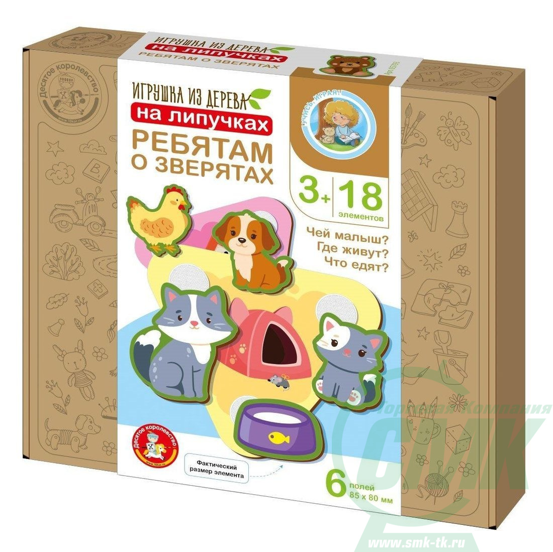Развивающая игра из дерева на липучках Ребятам о зверятах, 18 эл код105641 арт.05793