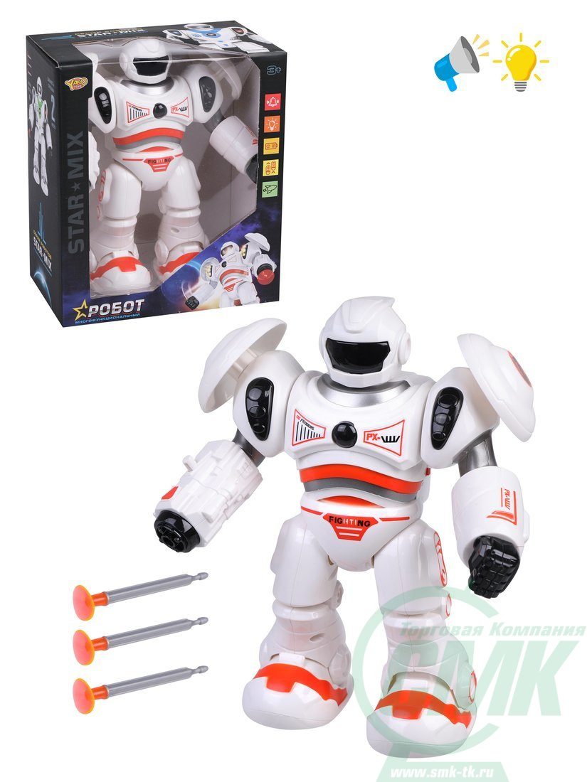 Робот электрифицированный, свет, звук, в комплекте ракеты 3шт, элементы питания АА*3шт. не входят, коробка код 613867 арт.M1353-2