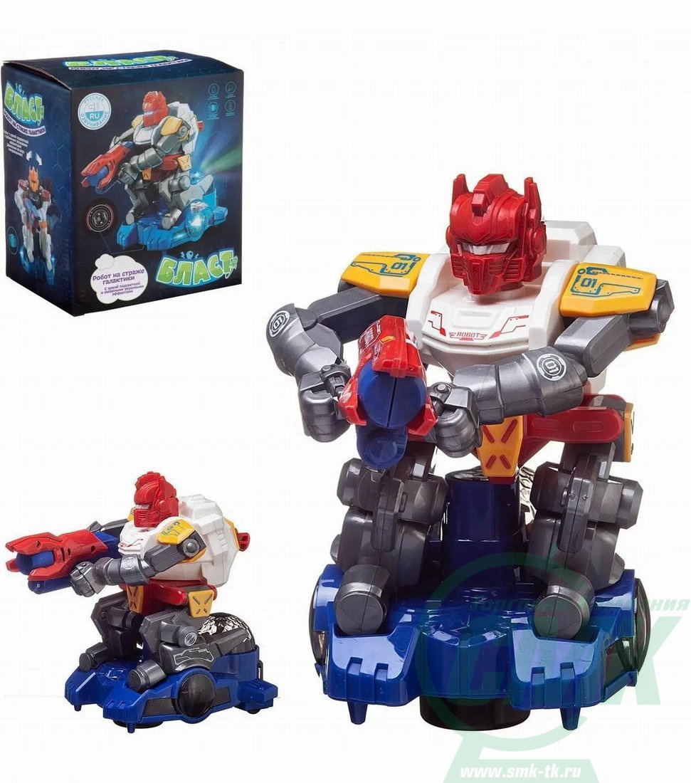 Робот "На страже галактики" из серии Бласт станет отличным подарком для любого мальчика. Он имеет оригинальный дизайн, яркую подсветку, встроенный в основание платформы вращающийся светящийся разноцветными огоньками шар. Робот может двигаться во всех направлениях, разворачиваясь при встрече с препятствием на пути. При этом его корпус также подвижен, перемещается вправо-влево. Он произносит фразы на русском языке.