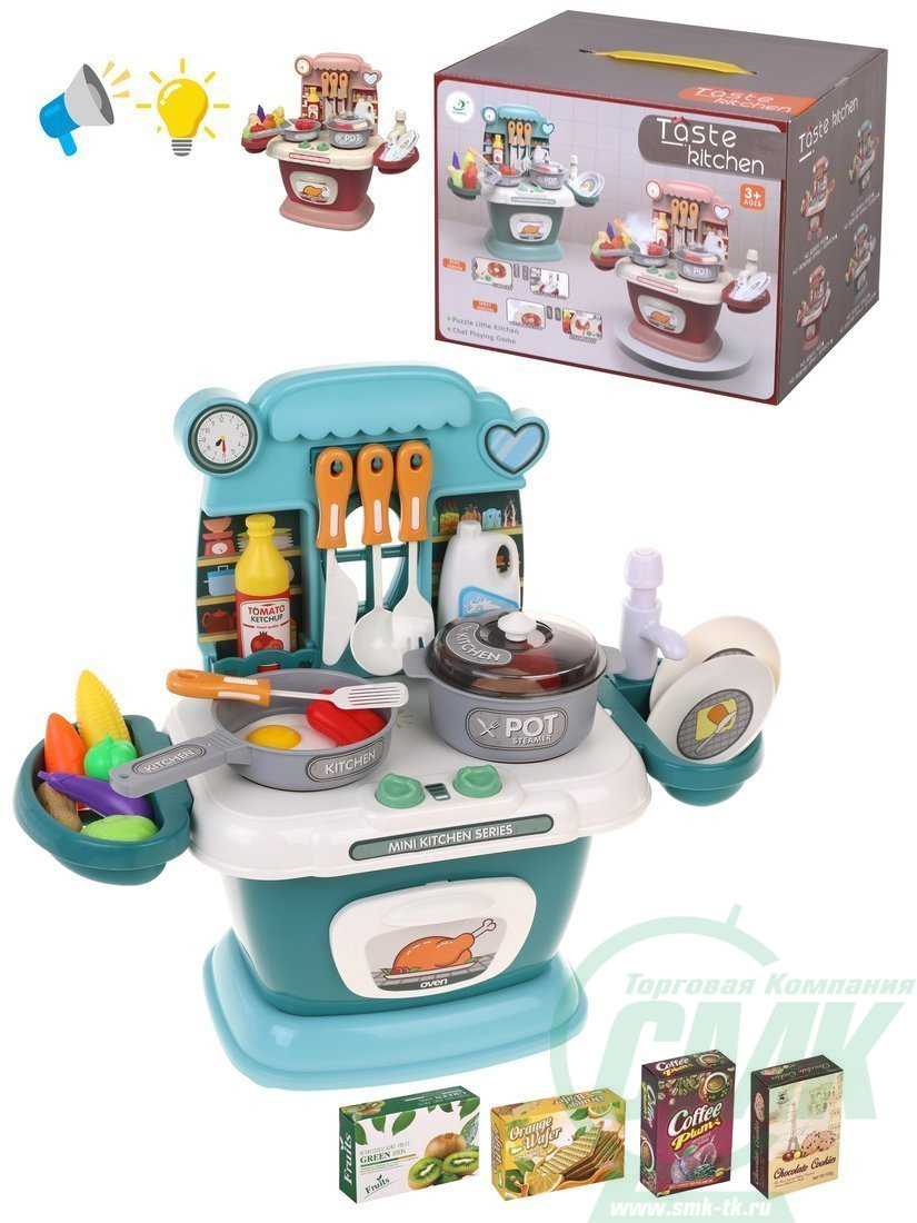 ДЕФЕКТ УПАКОВКИ Игр. наб. "Кухня", свет, звук, предм. 37шт.+ наклейка, эл. пит. ААх2шт., не вх. в компл., в ассорт., кор. код 654066 арт. BD8016