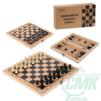 Настольная игра 3в1 Шахматы, шашки, нарды, размер игрового поля 24х24см., коробка арт.200389487 код.800862