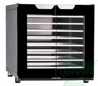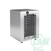 Противень Размер - 600х400 мм, количество уровней - 8, расстояние между уровнями, мм - 75. Тип управления - электромеханическое, способ пароувлажнения - заливной. T max, °C - 85, T min, °С - 30