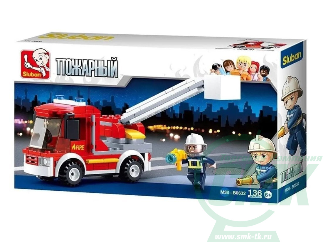Конструктор Пожарная машина с подъемной люлькой, 136 дет код 601266 арт. M38-B0632