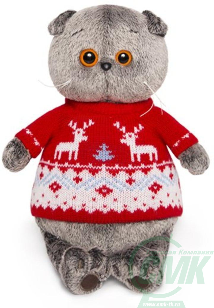 Милый котёнок Басик понравится и мальчику, и девочке! Этот очаровательный малыш очень озорной и весёлый: он просто обожает, когда с ним играют и берут его с собой в гости, любит ласку, любовь и внимание. У котика мягкая плюшевая шёрстка роскошного дымчато-серого цвета, симпатичная мордочка с большими глазками и коричневые подушечки на лапках. На котёнке - традиционный новогодний свитер с белым принтом и оленями. Игрушка поставляется в закрытой подарочной коробке, подвязанной атласными лентами.Высота котика составляет 22 см. Изделие изготовлено из искусственного меха с элементами пластмассы и текстильных материалов. Рекомендованный возраст: 3 года +