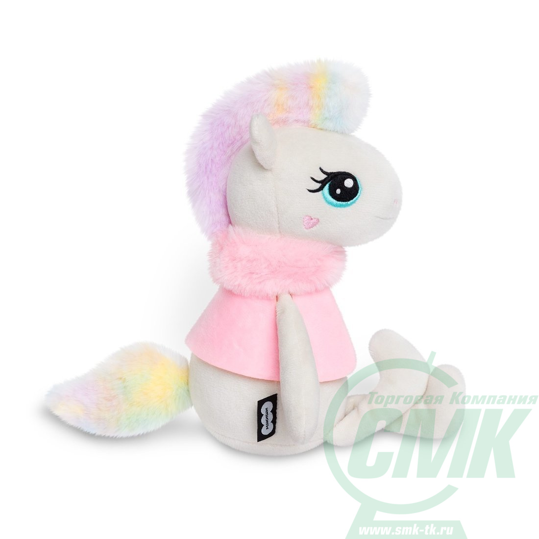 Эта чудесная игрушка не только радует глаз своим ярким внешним видом, но и дарит незабываемые тактильные ощущения. Нежное радужное покрытие в сочетании со стильным съёмным розовым пальто и шарфиком создаёт неповторимый образ, который придётся по вкусу даже самым взыскательным маленьким модникам. Благодаря продуманной конструкции, Зефирка может самостоятельно сидеть без опоры, что делает её ещё более привлекательной для игр.