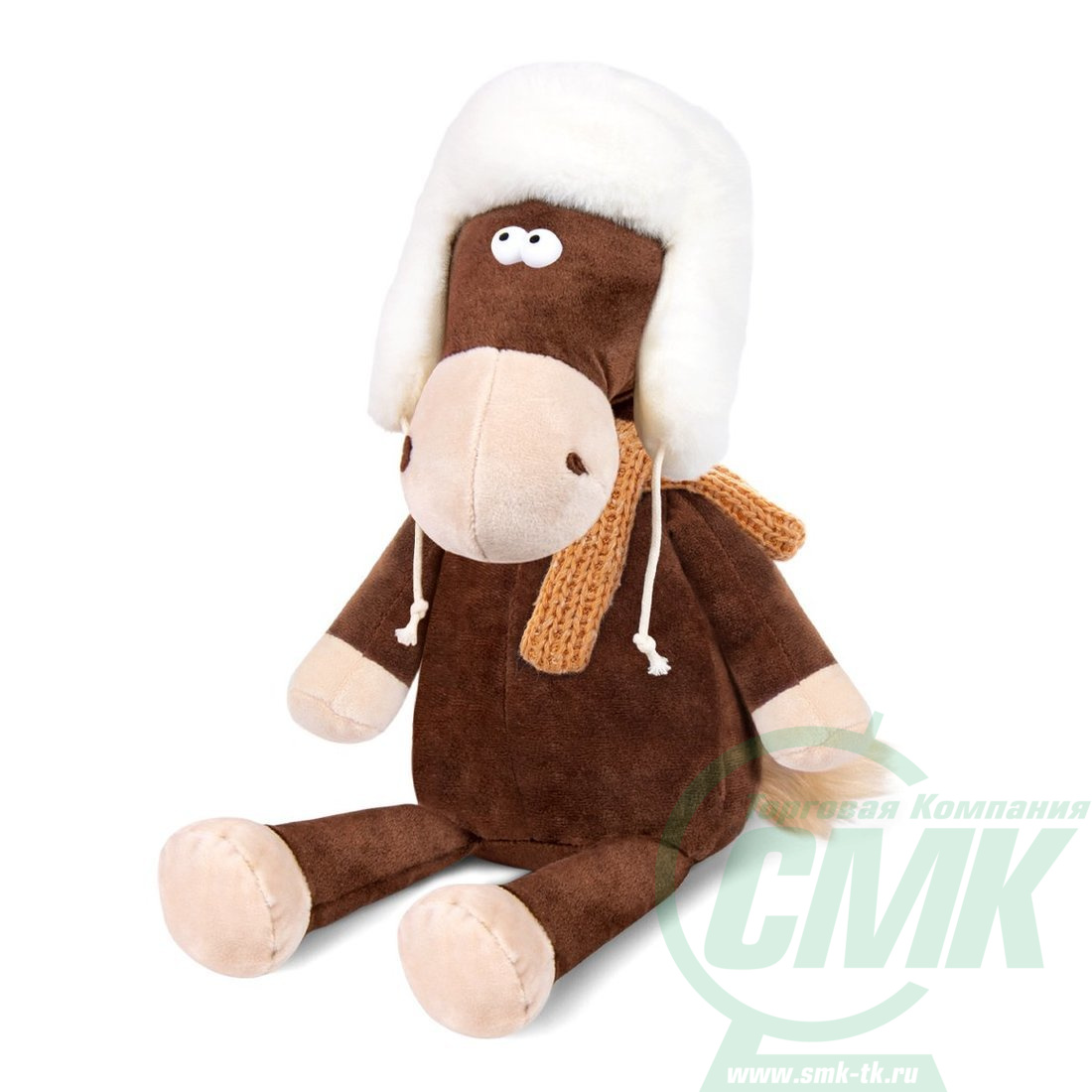Мягкая игрушка Конь Василий в ушанке и шарфе 22 см код.851603 арт.MT-250219-22