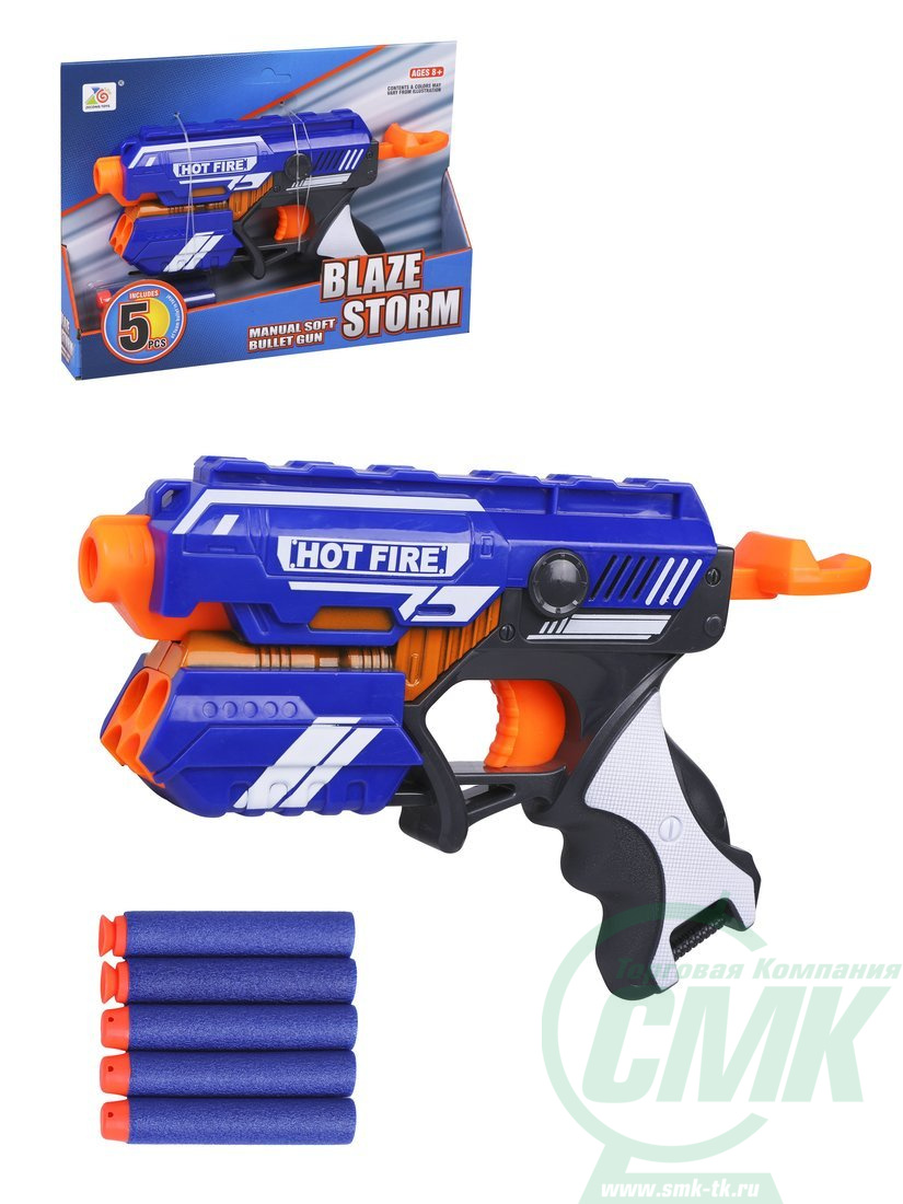 Бластер с мягкими пулями, в комплекте: м/пули 5шт. код 801994 арт. 7036A