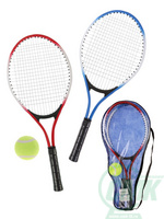 Ракетки для большого тенниса юниорские 53х22,5 см. 2 шт., мяч 1 шт., чехол, красная+синяя арт.636298 код.636298
