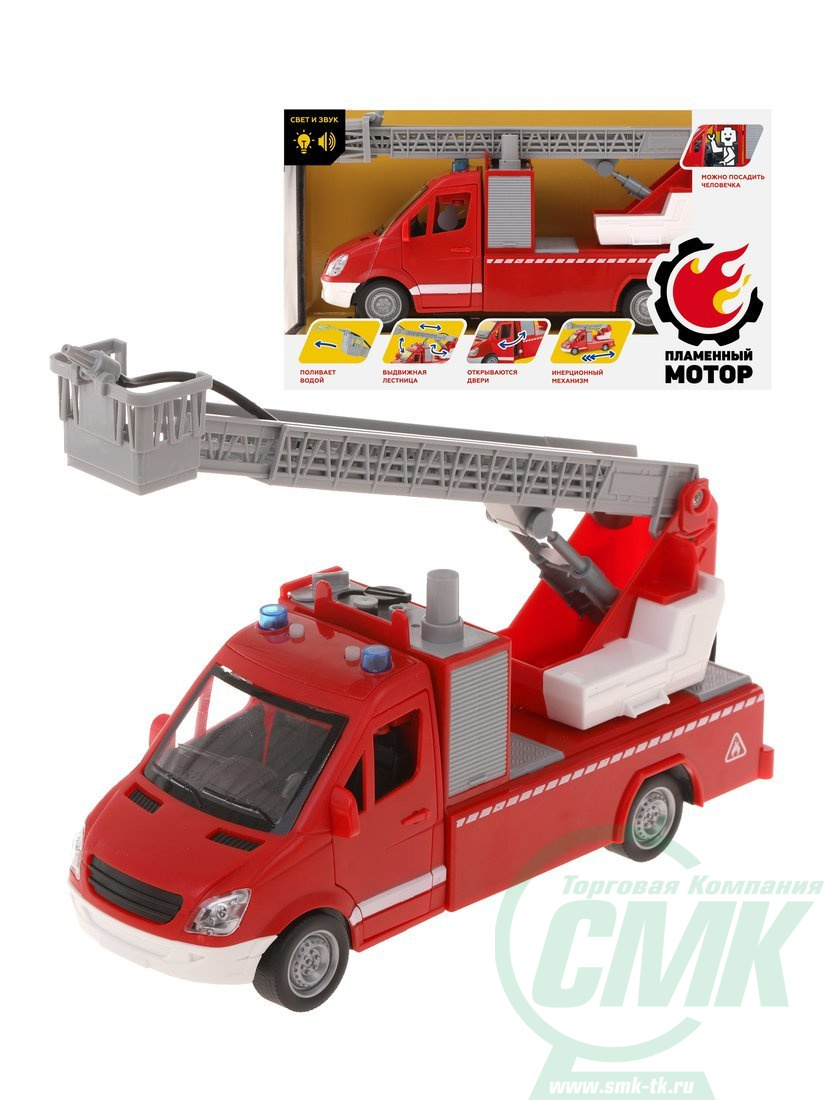 Машина Городские спасатели ин. Пожарная машина, откр.двери, стреляет водой, поднимается, выдвигается, вращается лестница, свет, звук, в комплекте тестовые элементы питания AG13/LR44*3шт. код 870889 арт. 870889