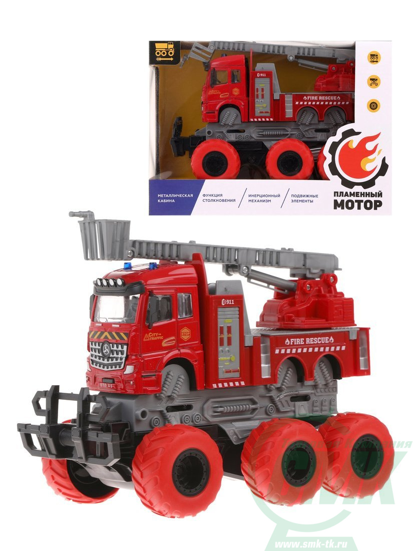 Монстр трак Пожарная машина, ин.мех-зм, при столкновении подпрыгивает на стойках, подвижные элементы, 6 колес код 870826 арт. 870826