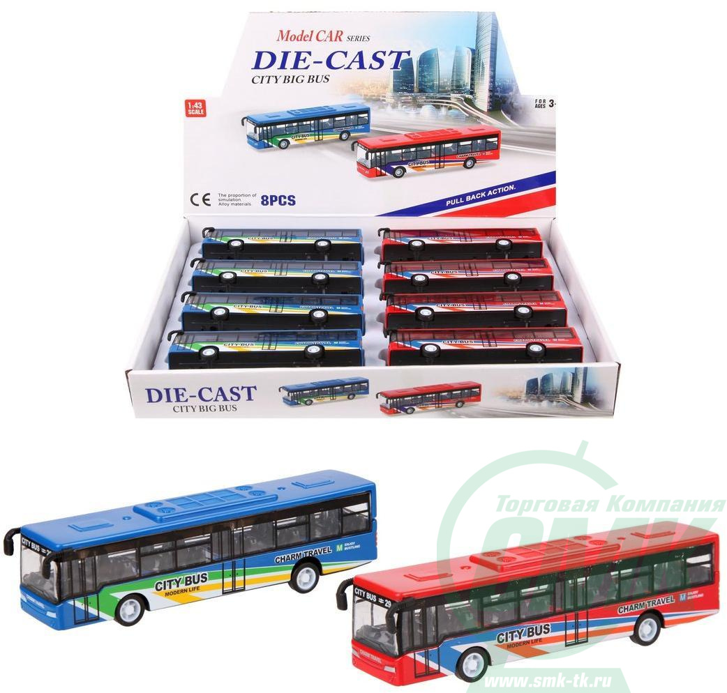 Автобус Городской металлический, инерционный, дисплей, в ассортименте код.640136 арт.632-33