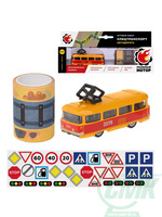 Набор Спецтранспорт Автодорога, машина Трамвай мет. ин., скотч-дорога 5м, наклеки с дорожными знаками код 870665 арт. 870665