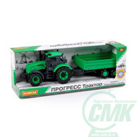 Трактор Прогресс с бортовым прицепом инерционный, (зелёный) код 109902 арт. 91260