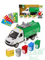 Машина Городские спасатели ин. Мусоровоз, откр.двери, загрузка и выгрузка бака из контейнера, карточки для сортировки мусора, свет, звук, в комплекте тестовые элементы питания AG13/LR44*3шт. код 870887 арт. 870887