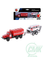 Набор машин Грузовик с прицепом Пожарная служба мет., ин., съемный тент, машина Скорая помощь мет. арт.870839 код.870839