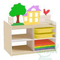 Тумба для игрушек и пособий 6 односторонняя на цоколе с 2-мя контейнерами и мини-матами