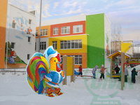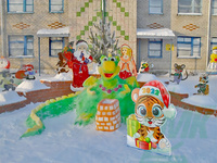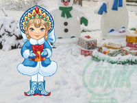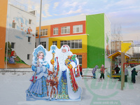 Композиция уличных фигур "Дед мороз, Снегурочка и Терем"