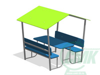 Теневой навес "Бюджетный-2" с лавочками (брус) 6000*4750*3185 мм.