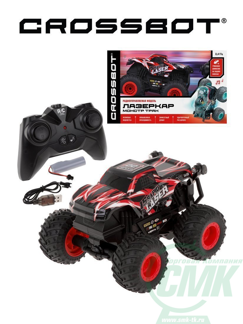 ДЕФЕКТ УПАКОВКИ Машина Лазеркар Монстр трак р/у, подсветка корпуса, трюковое движение на задних колесах, дрифт, аккум. код.615146 арт.870950