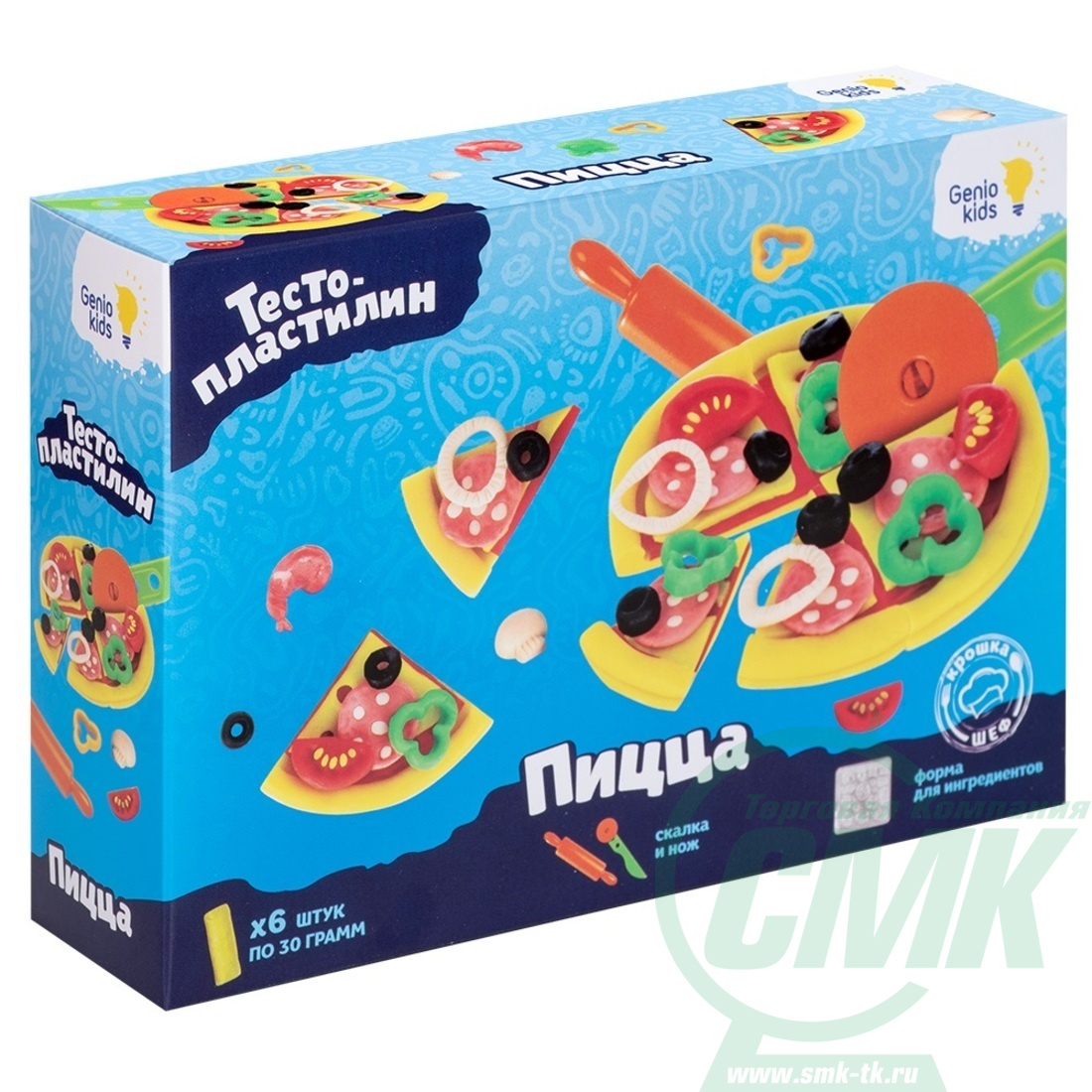 Мини-набор для создания собственной пиццы. В состав набора входят: тесто-пластилин - 6 брусков по 30гр, блистер для лепки ингридиентов, нож для пиццы, скалка.