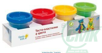 Тесто-пластилин – это натуральный и совершенно безвредный материал, созданный из пшеничной муки. Оно легко смывается и не оставляет после себя грязи. Комплектность набора: 4 баночки с тесто-пластилином по 140г (синего, зеленого, красного и желтого цветов).