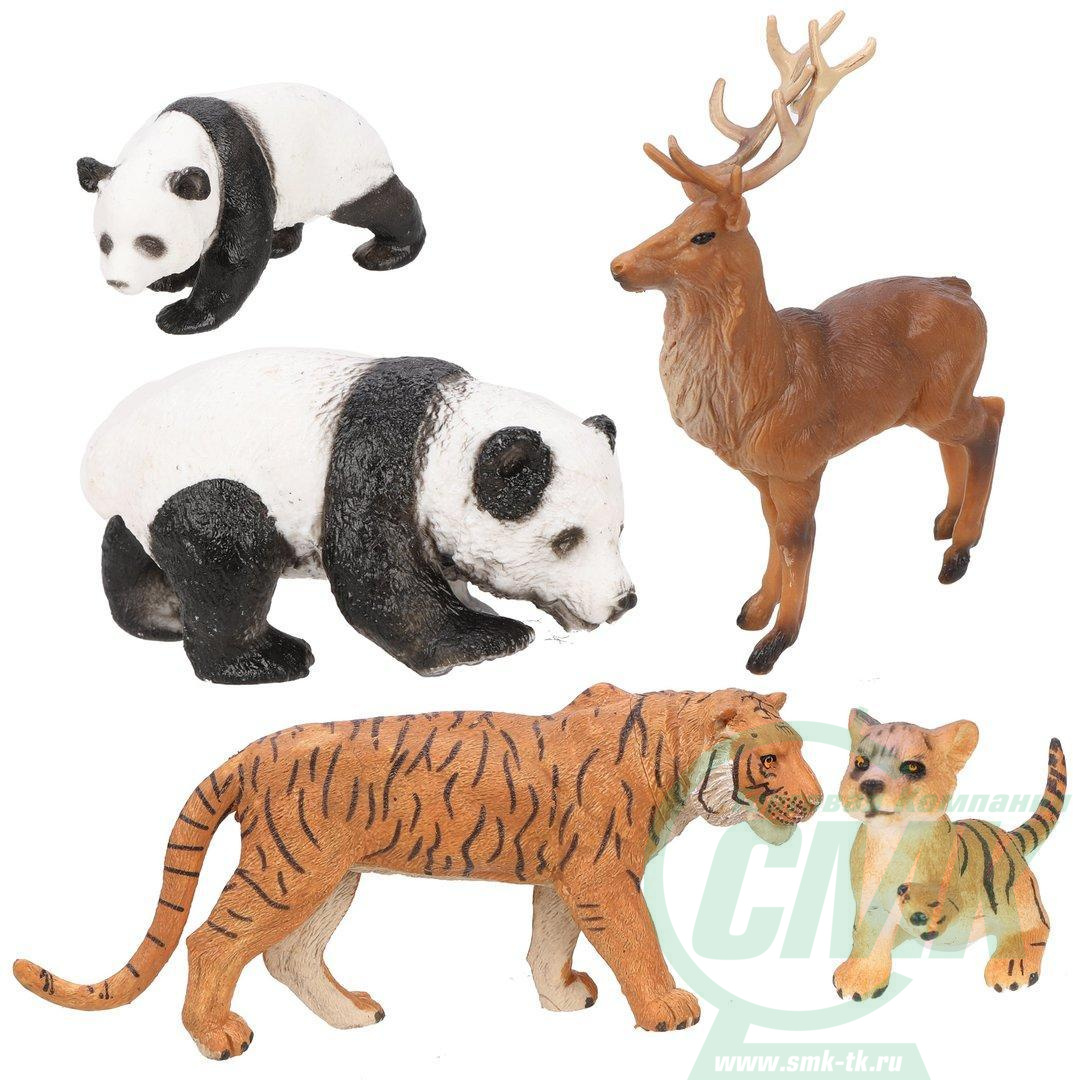 Набор «Звери и зверята» познакомит ребёнка с удивительным миром диких животных! В комплект входит 5 реалистично выполненных фигурок в виде лося, 2-х тигров и 2-х панд.